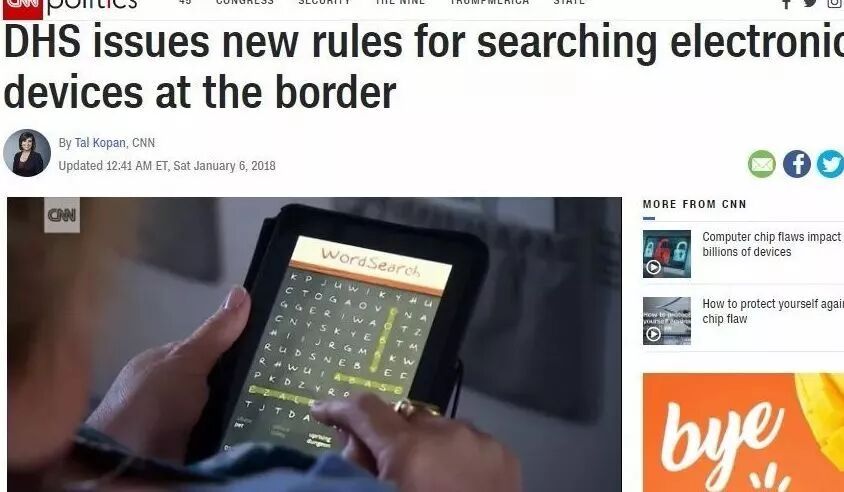 以前海关发生过,有人遭遇海关检查因微信表情包太黄,收藏了“裸女跳舞”的动画被遣返,也有查到留学生代购,还有留学生因为说挂靠学校被遣返事件。 虽然是偶然事件,导致游客争议很大,但以后可能查手机,电脑,社交已经成为常态。 因为海关已经出规定了:周五(1月5日),美国国土安全部公布在边界加强搜查旅客电子设备新规定,以作为边境官员的执法依据。 根据新规定,在所有进出美国的边界,执法人员可以对进出境的旅客,广泛地搜查电子设备,要求旅客提供密码,必要时,可以扣留设备及其内的相关信息。 CNN新闻报导,国土安全部周五公布的新规,厘清边境执法人员在搜查电子设备时的权责。依其规定,未来执法人员可以广泛地搜查电子设备,同时也拥有更大的裁量空间。 根据新规,在全美所有的边界,政府部门拥有广泛的法定授权,可以在没有搜索令的情况下,搜查通关旅客的财物,美国公民包括在内。 根据国土安全部的新政策,边境官员在搜查所有进出境旅客的电子设备时,可遵循下列原则: -可通过电子设备的软件,搜索储存在其内的信息,但不能从该电子设备中,取得储存在设备以外的信息。 -边境官员可要求旅客,将他们的电子设备置于离线模式或禁止和网络连接,并且确保他们没有改变设备中的内容。 -如果存在违法行为或威胁国家安全的合理怀疑,并获得主管的批准,执法官员可以对旅客进行更进一步的搜查。 -执法人员可以要求旅客提供电子设备的密码,以及扣留被加密或无法开启的设备,以进一步调查。正常情况下,扣留期间不能超过五天。 哪些设备会被检查? any device,也就是说手机、电脑笔记本、iPad,基本上所有电子设备都有被检查可能。 新规定详细说明了如何处理被扣留的信息,包括私密信息的处理、是否有需要删除信息、如何记录及报告处理程序等。 进入美国海关,边境检查人员可能会要求过境者给出电脑密码,以便查看内容。拥有美国籍的,如果拒绝解锁,等待你的可能就是设备被扣押。 不让检查的后果会怎么样? 如果你是美国居民,如果拒绝解锁,等待你的可能就是被CBP扣留你几小时,甚至扣押你的设备。扣押可导致对设备的取证检查,CBP有可能数月都不还给你。 如果你是游客可能更惨一些,你不是美国居民,CBP可能会阻止你入境,将会被遣返。 进入美国海关,意味着,你将受到美国海关最高标准的安全检查和电子设备检查,所以一定要提前做好以下应对准备。 1、做好电子产品被检查的准备。这意味着你在出发以前要记得给手机、iPad,笔记本电脑或其他电子产品充电,检查一下它们的护套是否容易取下来(或者干脆事先取下来以备检查)。这是因为,如果你被随机选中,但你的电子产品却没电了无法启动,或是除不下护套,那它就不能随你继续旅行了。 2、提前“整理好”你的电子产品(手机、iPad ,笔记本电脑)内存储的文件、资料(自查手机里有没有敏感信息)。据媒体报道说,苹果手机和三星手机将会受到格外严格地检查。 3、如果你的电脑硬盘上有个独立的加密分区,可能反而引起CBP探员的注意。 4、可以考虑将敏感数据转移到云端,或者存储在放家里的另一台设备上。 5、如果不想让CBP看你的工作电邮,那就从智能手机上把邮件App卸载掉,CBP对你手机粗略的搜查不太可能发现你最近卸载了哪些App。 6、尤其要记住:在检查期间“不能对CBP探员撒谎,被问到就要据实回答”。原则就是,问什么答什么,不问什么不答什么,要什么给什么,不要什么资料不主动出示什么资料。 为了避免麻烦,中国游客在进入美国之前最好先删除微信,目前已经有太多案例表明“你不在意的细节”会被海关作为遣返的理由。 特别!特别!提醒:任何涉及儿童色情的影像及照片都不要携带,从留学生到70多岁来美的中国老人,这个被判刑的太多了,自己的孩子裸体照片也不可以存放电子设备里,因为也算是涉及儿童色情,千万不要被查到这条。 最后,提醒出美国的朋友,出美国也检查,所有你最好至少提前2小时抵达机场,以应对更加严格的安检过程。