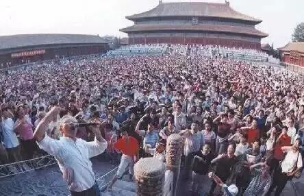 李阳在天安门广场教"疯狂英语"的粉丝们训练英语