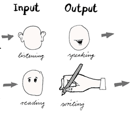 我们之所以先说“听+读”,再说“说+写”是因为学语言就像是一个给杯子倒水的过程—要多到一定程度才会满溢,否则空杯有何可倒?所以,当“听”积累到一定程度,你对每个词的发音都了如指掌,再开口去说至少不会偏离太远。阅读也是一样,在我们学习一门语言的写作的时候,一定是从模仿开始,不是要大家照搬照抄,而是希望大家通过阅读的过程学会词汇、短语或句型的用法,在语境中感受词汇的差异,把阅读文章见到的实用句型、高频表达,都可以变成写作素材、自己再动笔写作自会下笔有神。