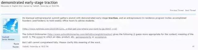 在论坛上提问时附上句子的语境或原文链接,然后看看其他人是怎么解答的。比如有个俄罗斯网友在上面问句子中"traction"是什么意思