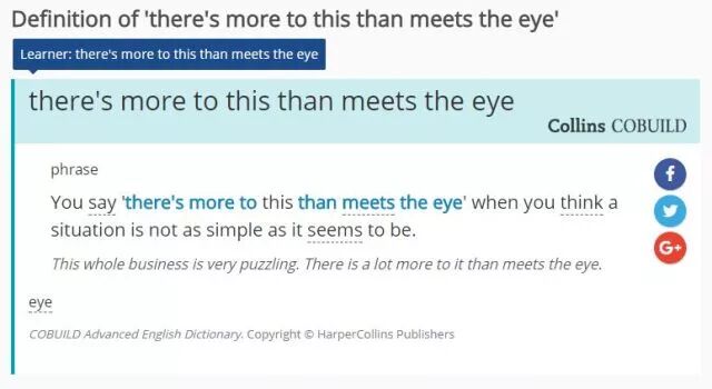 文章开头第一句 there is more to cradling an infant than meets the eye 是什么意思?如果按照单词意思直译肯定解释不通,我们需要把它们当成词组来理解。在柯林斯词典里面可以发现这样的解释: