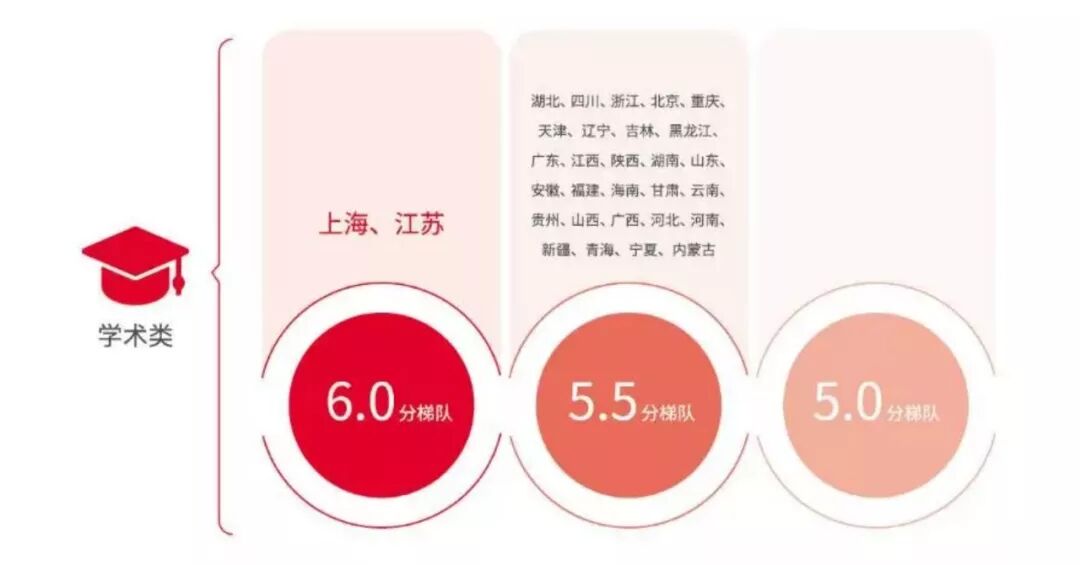 无论是学术类还是培训类雅思考试,从中国大陆各地区的雅思成绩对比来看:上海独占鳌头,其它强省\直辖市为江苏、湖北、北京、浙江、四川、重庆、广东。而各地的培训学校也是在北京和上海的资源最为丰富。