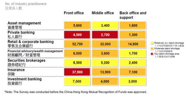 香港金融服务发展局(FSDC)在2015年1月的报告中将资产管理和私人银行领域确定为人才严重短缺的行业。