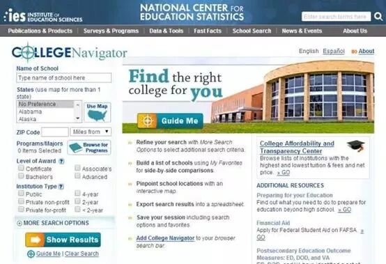 每年US News的排名通常都是在家长学生的翘首期盼中到来,除了最好的大学排名还有专业排名(商科、教育、工程、法律、医学),另外还提供全面的学校介绍、申请要求、学术情况、历年申请情况等等。
