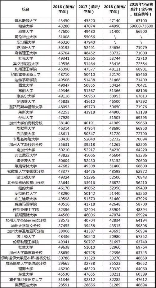 四年制美国私立大学费用(不包括住宿、伙食、交通等费用)平均为5-6万美元。