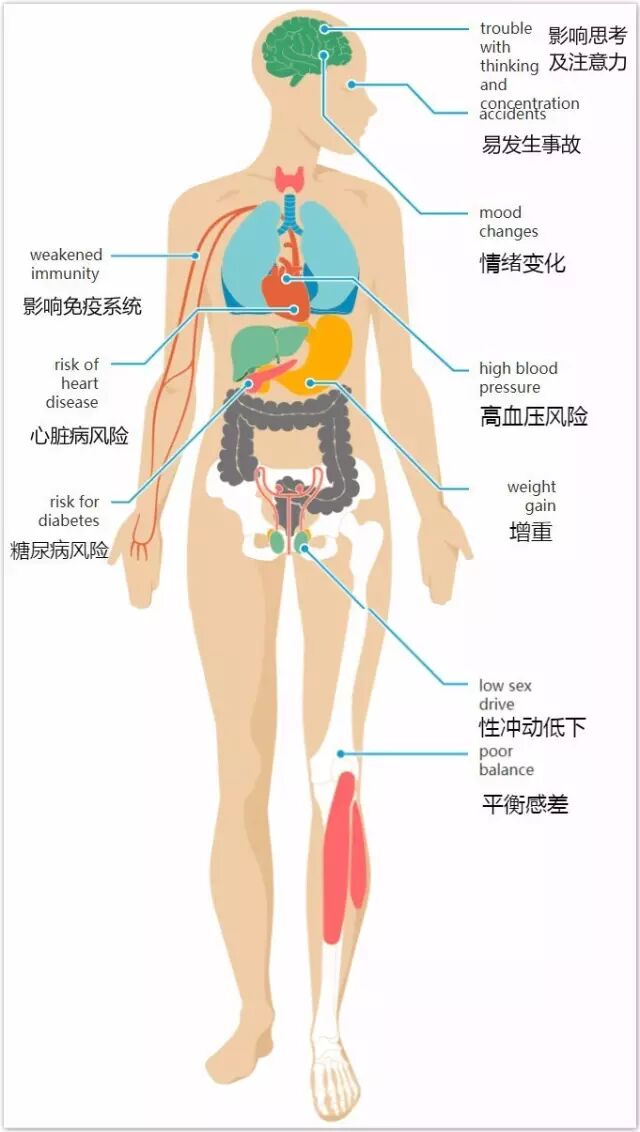 美国健康热线(Healthline)网站用一张图说清楚了缺乏睡眠对人体的10大影响: