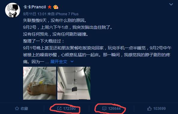 博主@卡卡Prancil在文章中讲述了自己突发脑出血,拿到病危通知书的可怕经历……