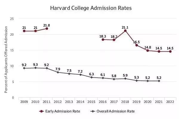 常青藤大学录取率再创新低。其中哈佛大学42749人申请,1962人被录取,录取率跌破5%,仅为4.59%;而在10年前,高冷如哈佛,录取率也高达10%,早申录取率翻倍,其它藤校更是在15%-30%不等...