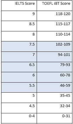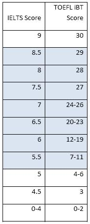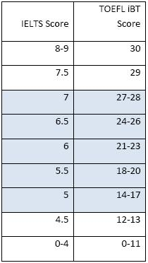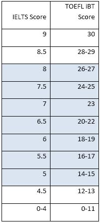 1. 托福、雅思对应关系