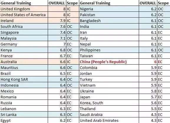中国均分是 6.0,与孟加拉(外环)、哥伦比亚(扩展环)、印度(外环)、伊朗和意大利(均为扩展环)接近。