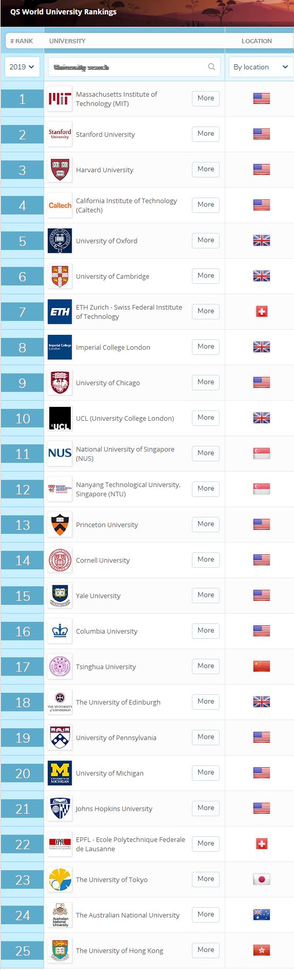 和去年一样,今年的QS世界大学排行榜的前四名依然被美国大学包揽!斯坦福大学、哈佛大学、加州理工大学分列二到四名。多数美国大学的排名都有所上升,TOP20里的耶鲁大学、哥伦比亚大学、密歇根大学都至少上升了一个名次。