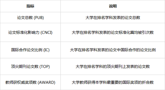 2019软科世界一流学科排名-排名指标