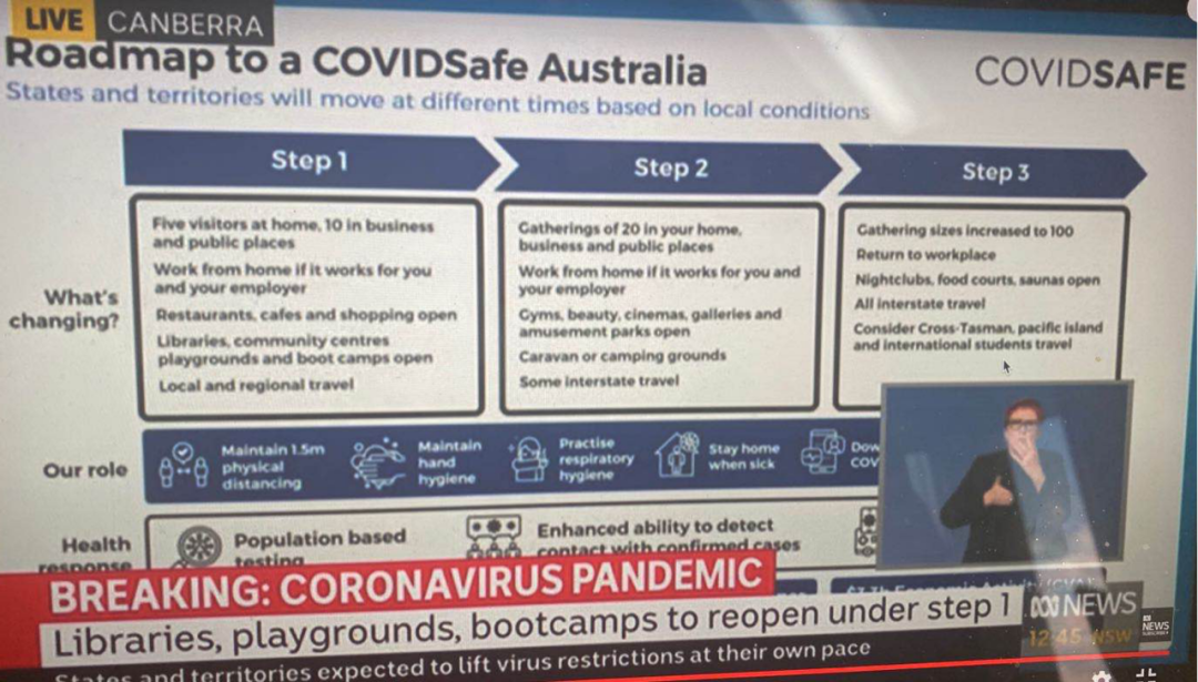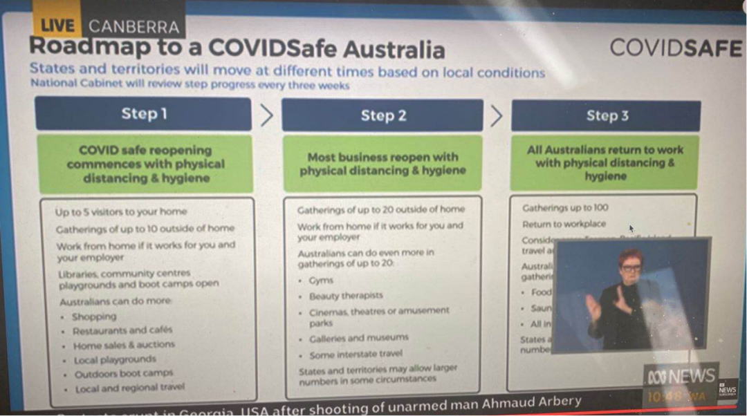 在内阁会议上,总理莫里森表示,全国解封将分为3个阶段进行。