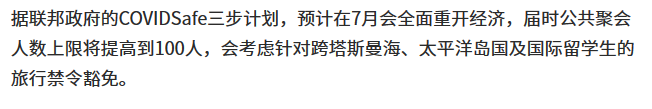 看来,留学生在7月之前就有望返回澳洲,毕竟现在恢复经济是澳洲的头等大事,而留学生正是他们发展经济最重要的一环。